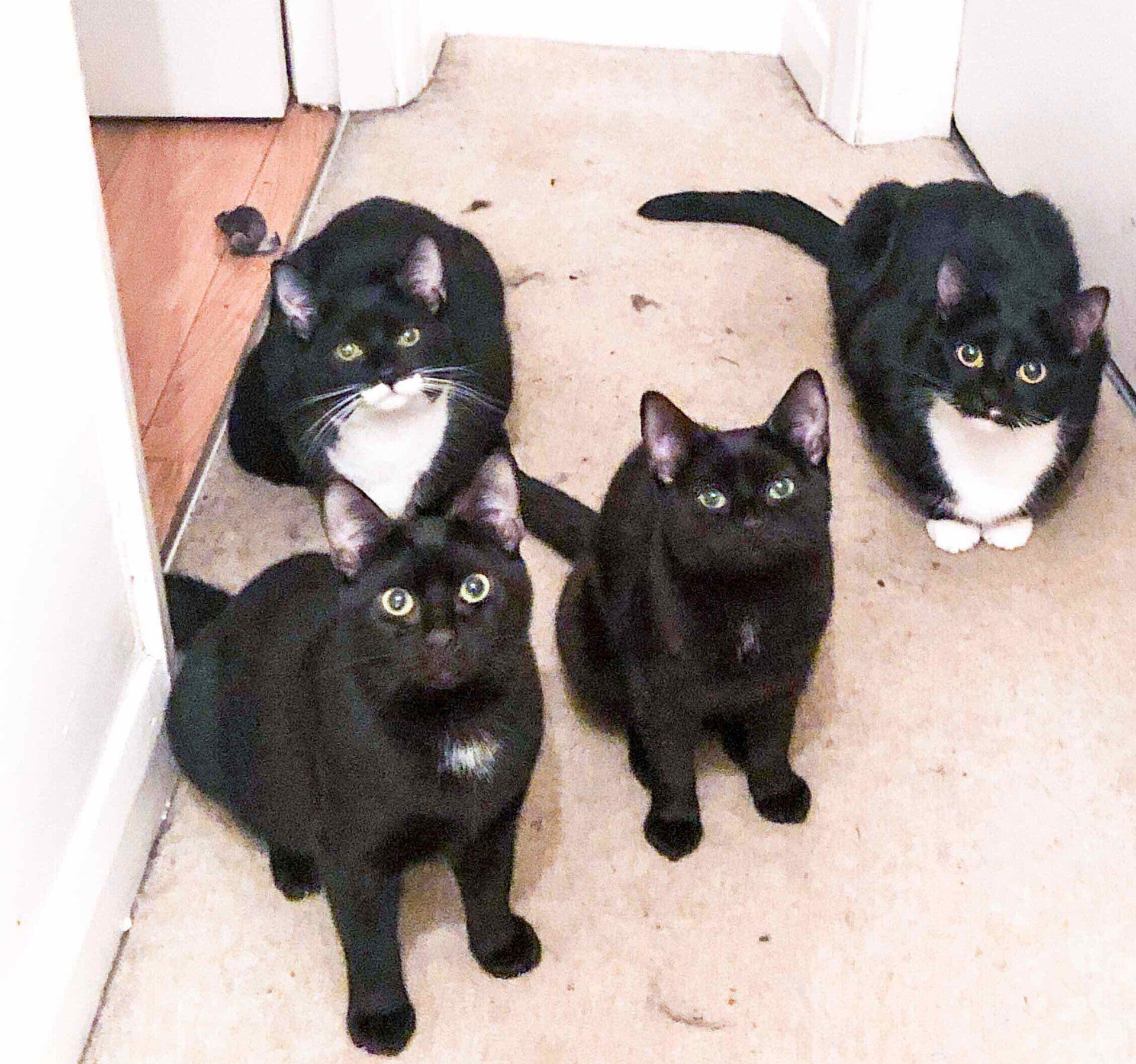 Raisin was a feral kitten just several weeks old living amongst a colony of cats in a carpark in East London 2018. Also there were her siblings and mum. I trapped Raisin, her two siblings and mum, then took them back home and got them all to the vet the next day as they were suffering from cat flu. They all eventually recovered after several weeks. Although their mum was friendly, Raisin and her siblings (Sultana and Neegy) were feral so it was quite a while before they became friendly. Today they are very friendly but you still cannot really approach them to pick them up as they get spooked. They must come to you, well Raisin and Sultana do anyway, Neegy not so much. Their mum, who was friendly, was rehomed to a friend of mine.
