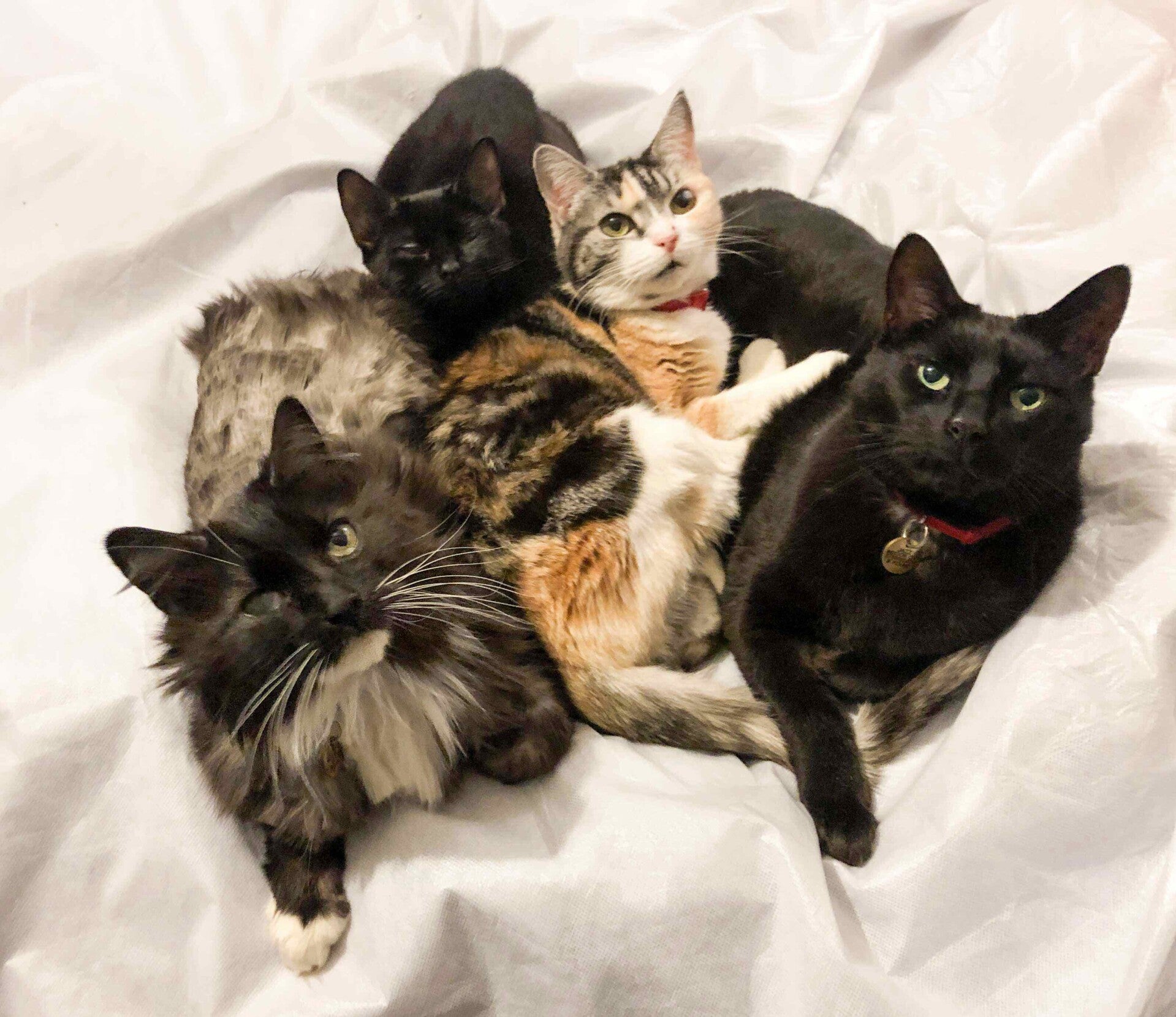 Raisin is the forever kitten, still a small cat. Very playful and living in the moment. She is obsessed with Jazzman, she is his shadow and looks up to him.